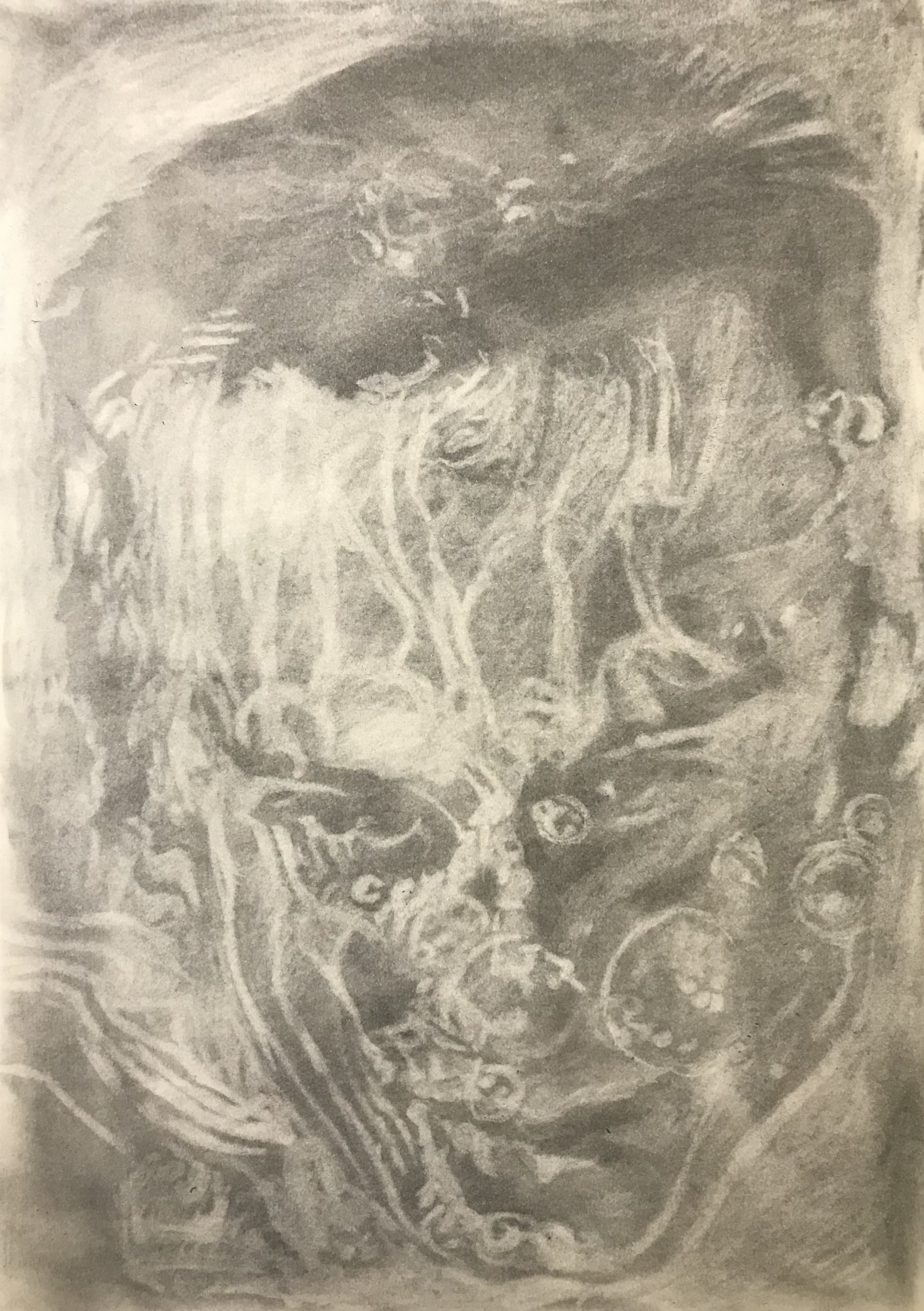 Underwater, 2022, 42 x 30 cm, pó de pastel e borracha sobre cartão